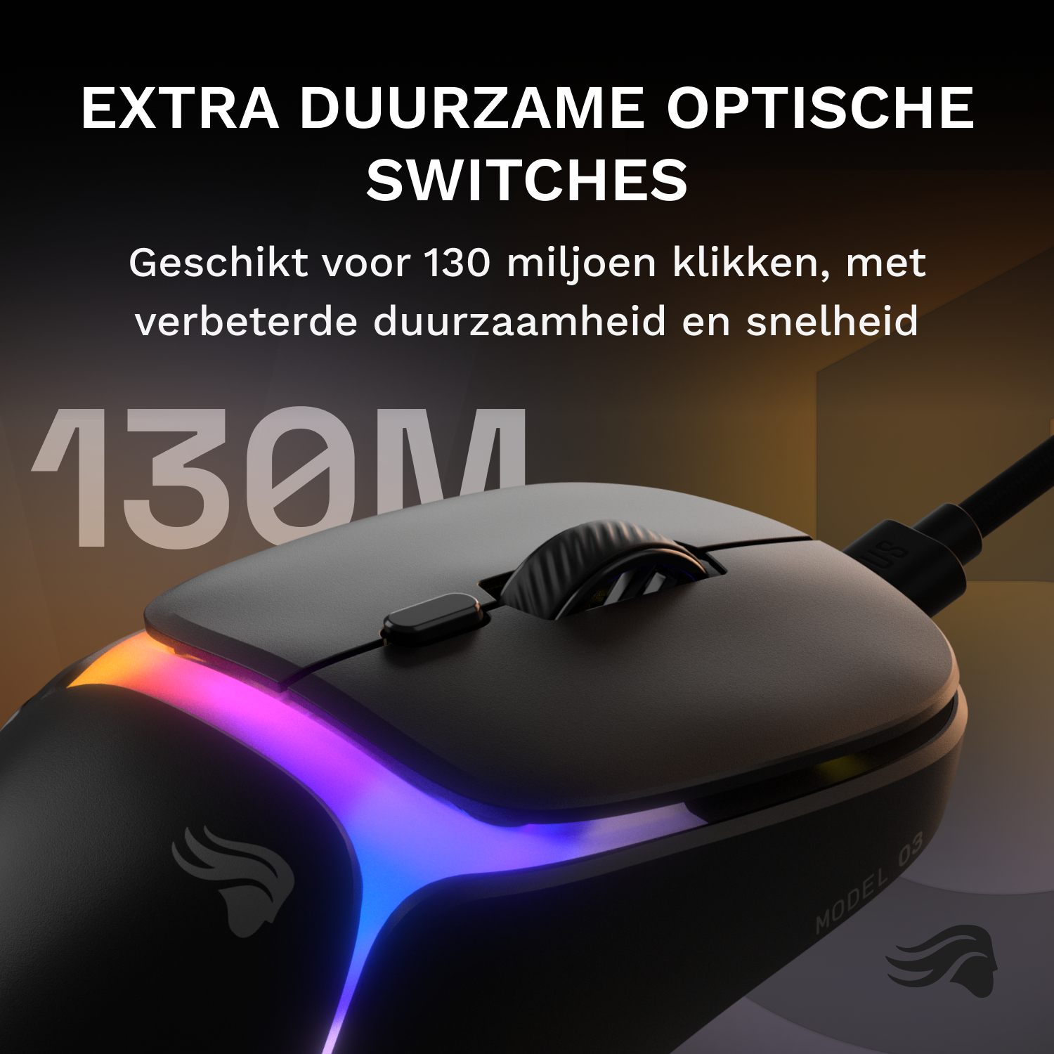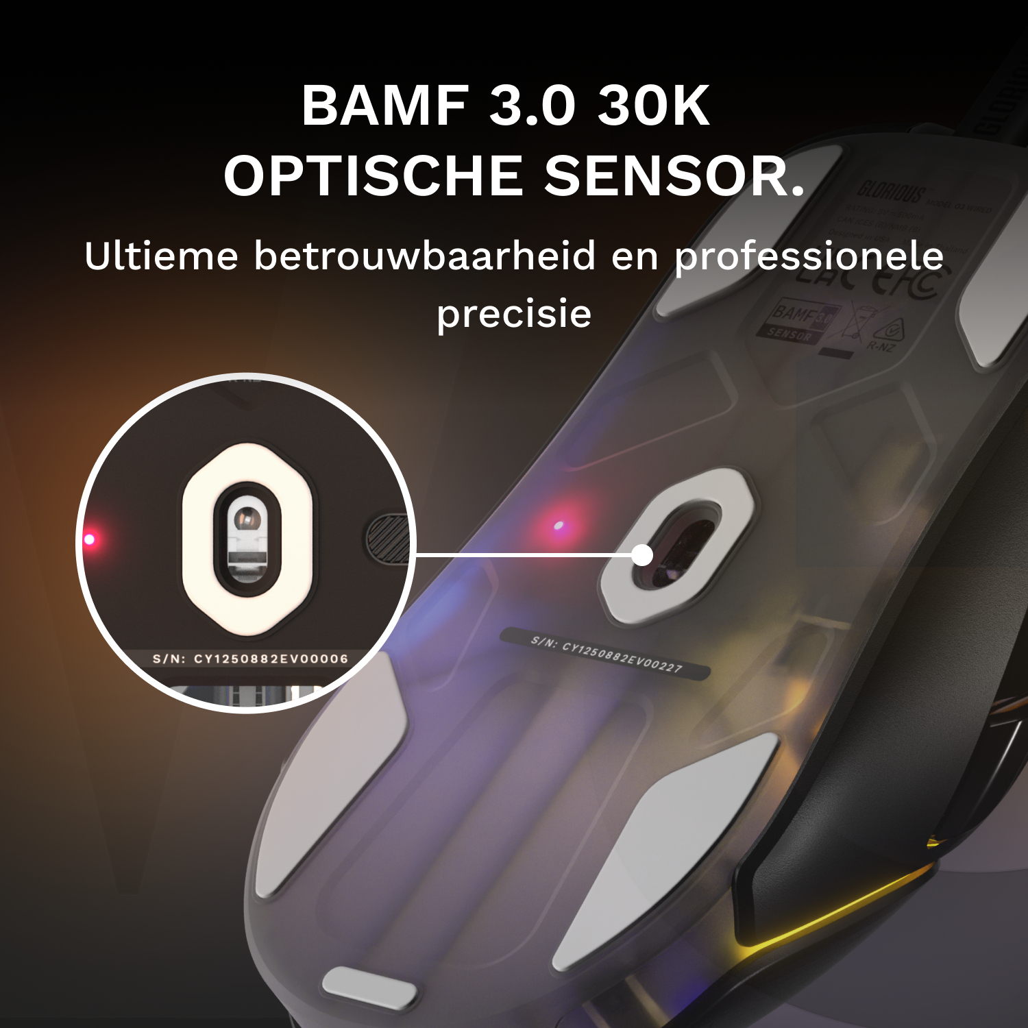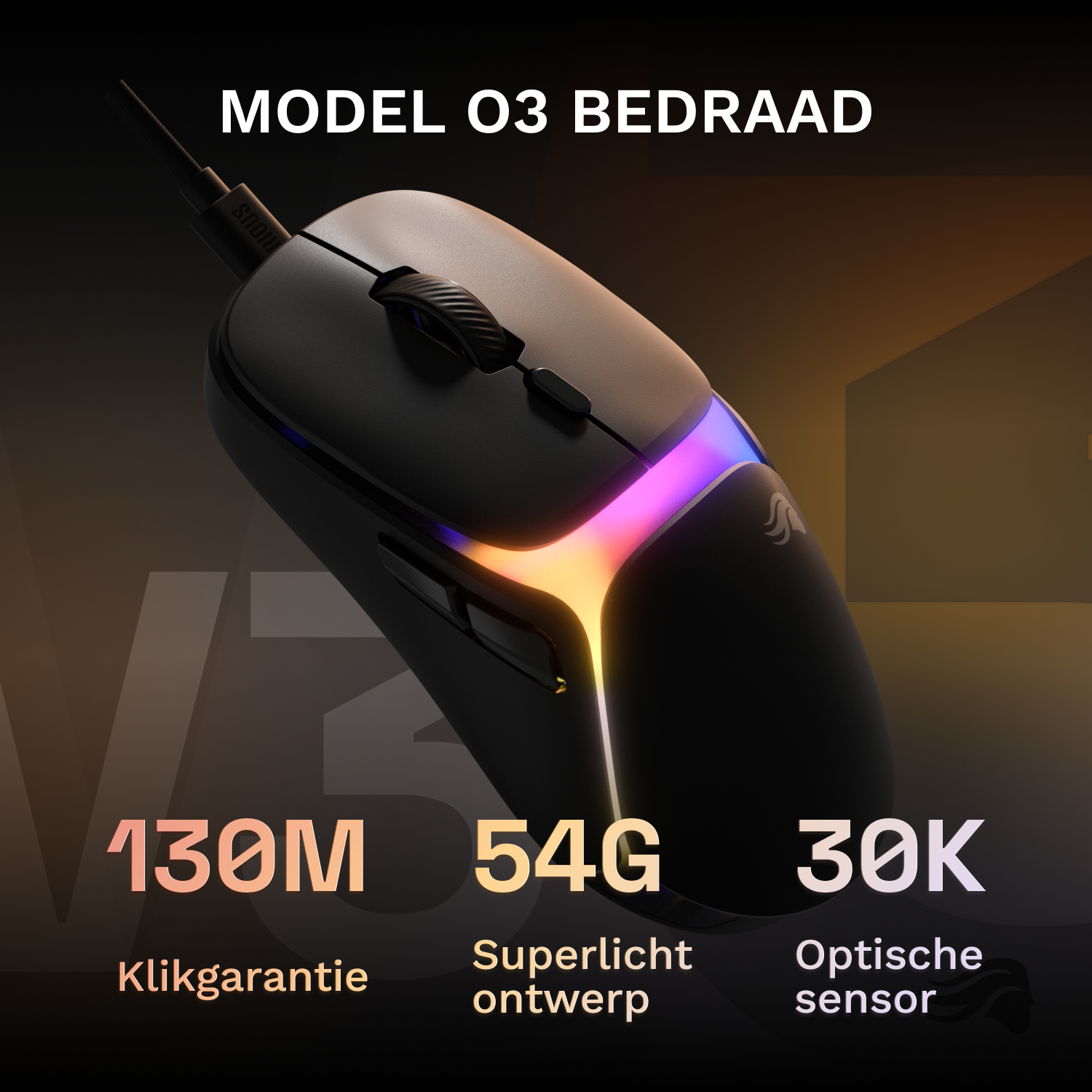 Het bekabelde Model O3 is een hoogwaardige ultralichte gamingmuis van 54 gram. De 30K DPI optische BAMF 3.0-sensor zorgt samen met de 750 IPS-tracking en 50G-versnelling voor een ongeëvenaarde nauwkeurigheid en snelheid. Het symmetrische, dichte ontwerp met optische knoppen met een klikrate van 130M overleeft bijna alles, ook je inspanningen op weg naar platinaniveau.