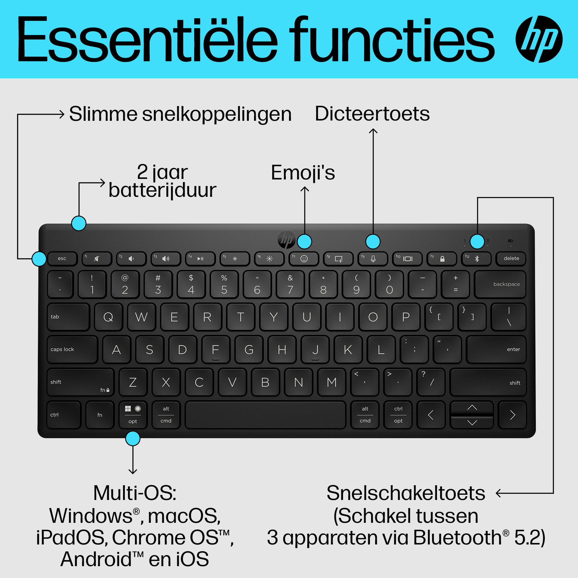 HP 355 Compact Multi-Device KBD AZERTY toetsenbord Thuis Bluetooth Zwart