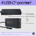 USB-C® is de powerhouse onder de poorten. Deze hub beschikt over 4 veelzijdige USB-C®-poorten<sup>[2]</sup> in een compacte behuizing: een 65-watt poort<sup>[3]</sup> om je laptop van stroom te voorzien, 2 poorten om accessoires aan te sluiten en op te laden en nog een poort voor het aansluiten en opladen van je 4K<sup>[4]</sup>-scherm met volledige functionaliteit.
