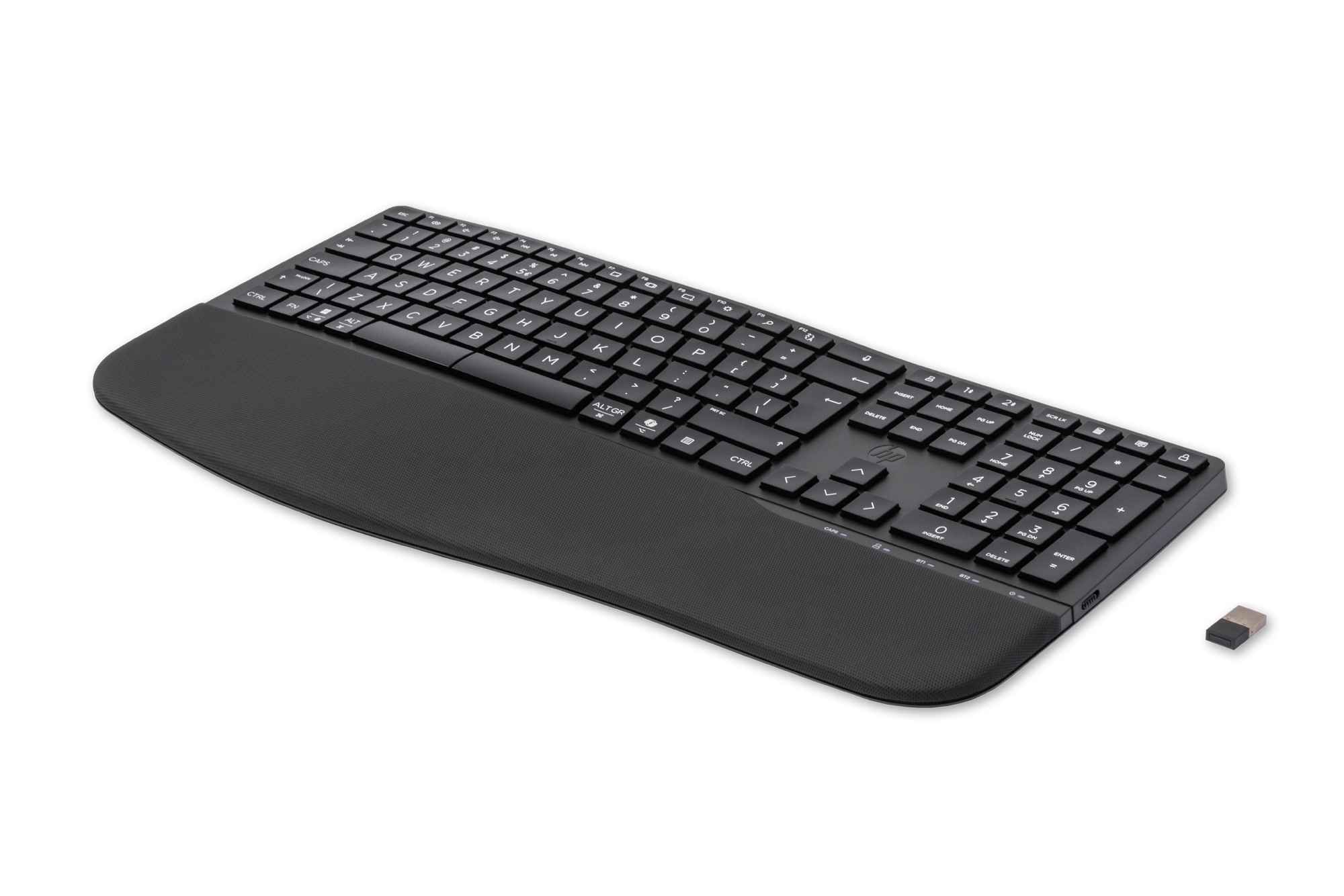 Heb je een toetsenbord nodig dat perfect bij je past? Het HP 680 Comfort Dual-Mode toetsenbord is precies wat je zoekt. Met instelbare typhoeken, programmeerbare toetsen[1] en veilige aansluitmogelijkheden biedt dit toetsenbord al het comfort, de personaliseerbaarheid en de compatibiliteit die je nodig hebt.