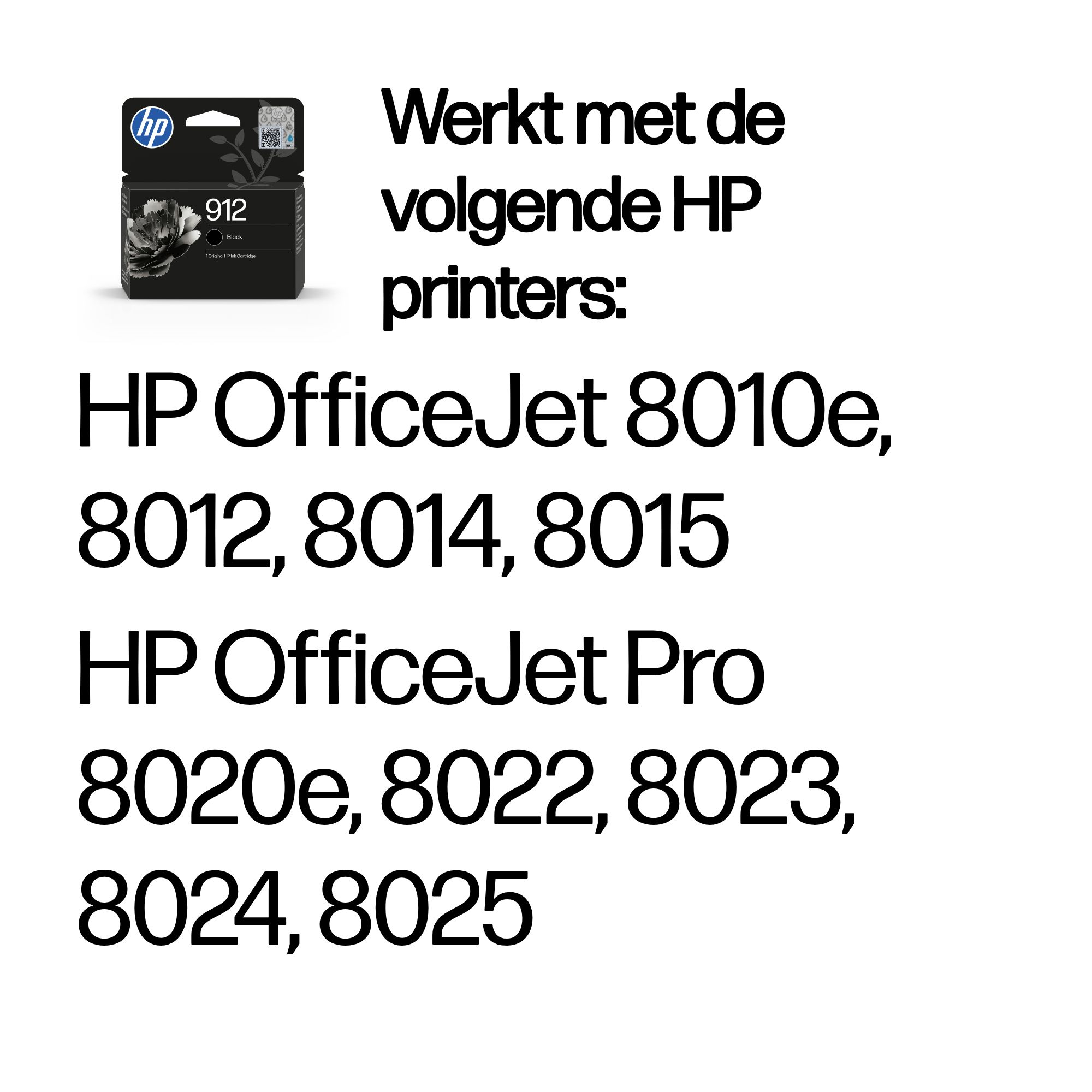 | Compatibiliteit | HP 912 inktcartridges werken met: HP OfficeJet 8010e, 8012, 8014, 8015 HP OfficeJet Pro 8020e, 8022, 8023, 8024, 8025 |