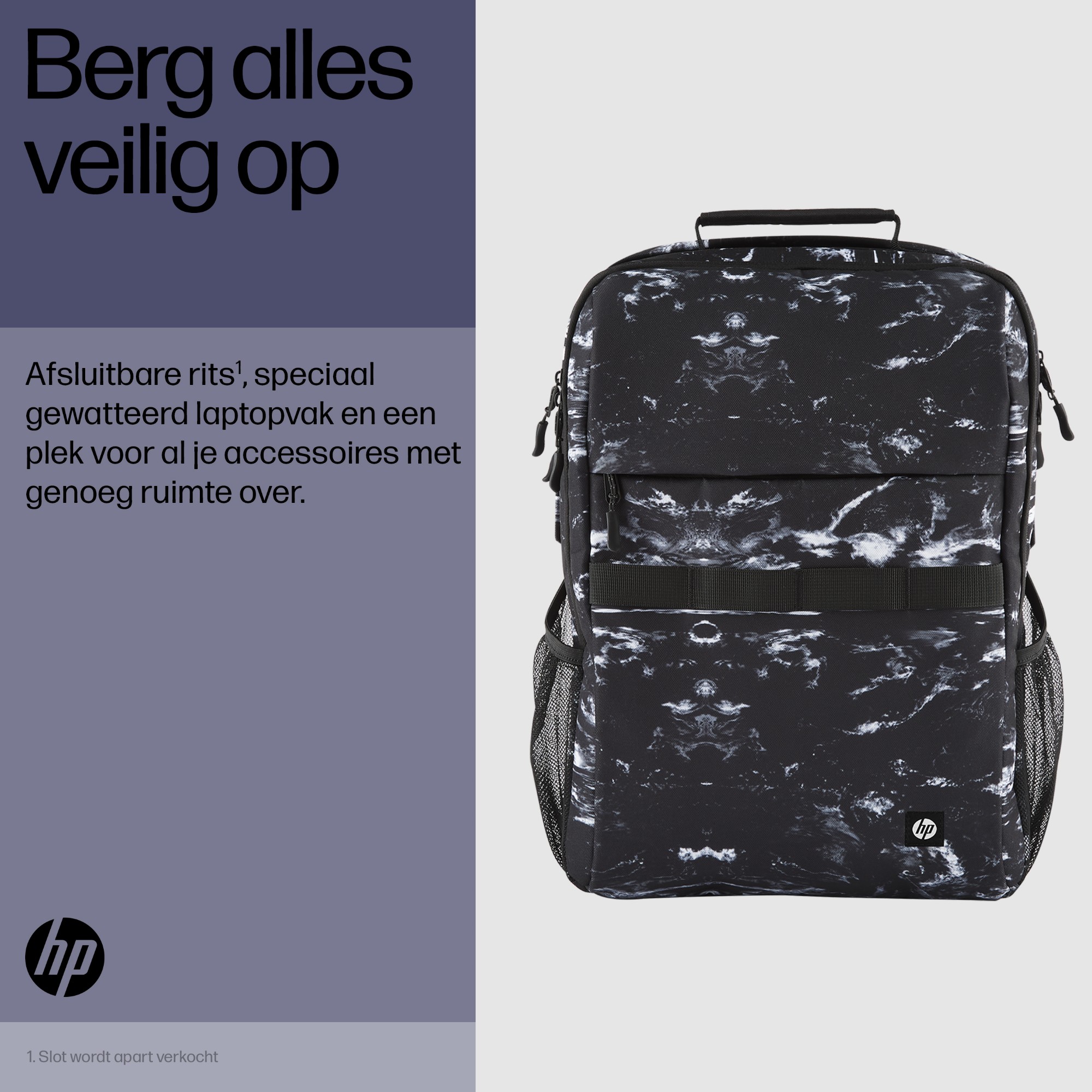 Eén grote, handig ingedeelde tas met plek voor al je spullen. Hij heeft een groot hoofdcompartiment voor boeken en andere spullen, een speciaal gevoerd 16-inch laptopcompartiment, een snel toegankelijk vak voor accessoires, een vak voor pennen aan de binnenkant, een aan twee kanten te openen vak voor een waterfles en lussen om andere dingen mee vast te zetten. 20 liter handig ingedeelde inhoud voor alles wat je nodig hebt.