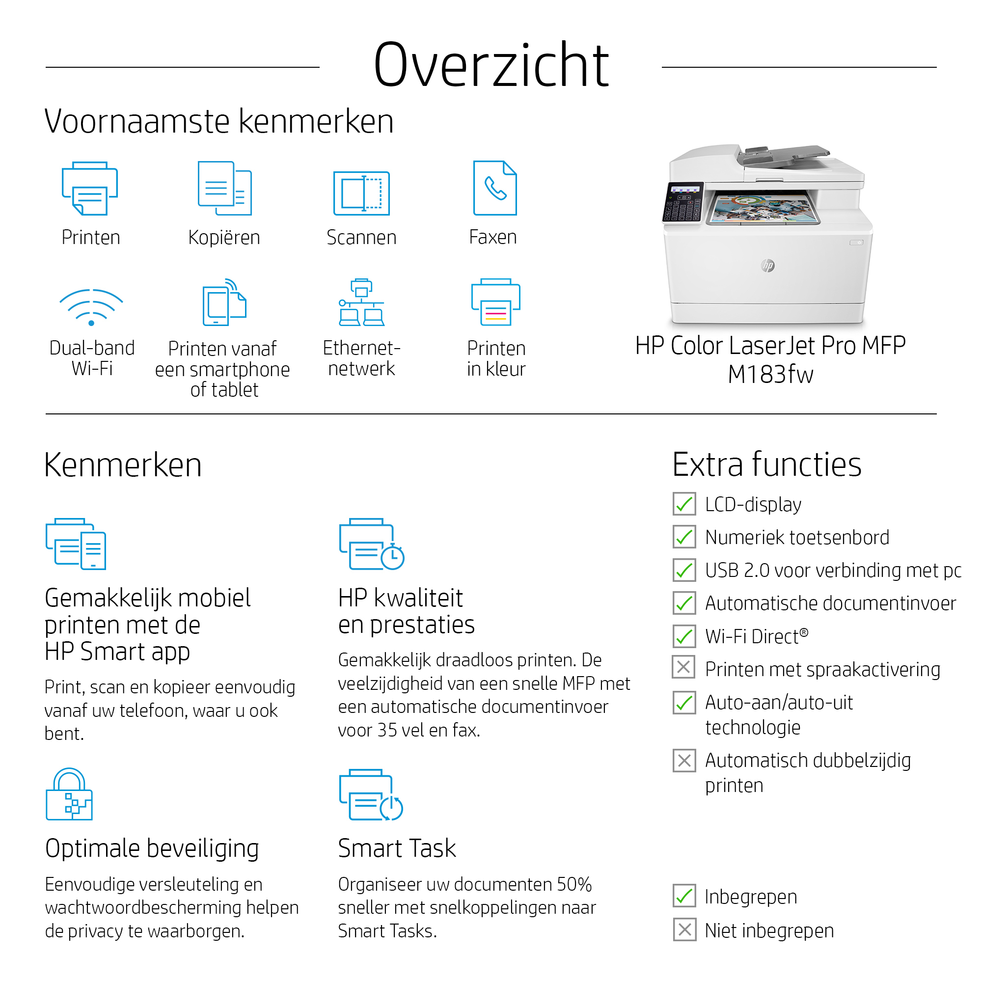 HP Color LaserJet Pro LaserJet Pro M183fw Draadloos Multifunction Kleur Printer, Kopieerapparaat, scanner; dubbelzijdig
