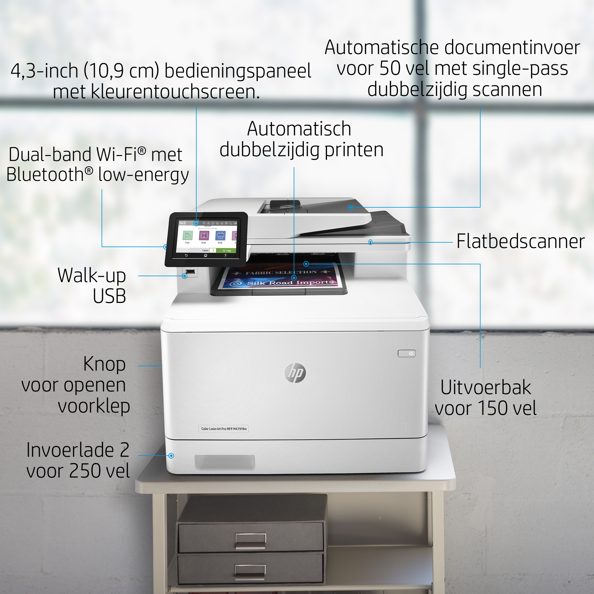 Print draadloos met of zonder netwerk, blijf verbonden met dual-band Wi-Fi en Wi-Fi direct.[3,4,5]