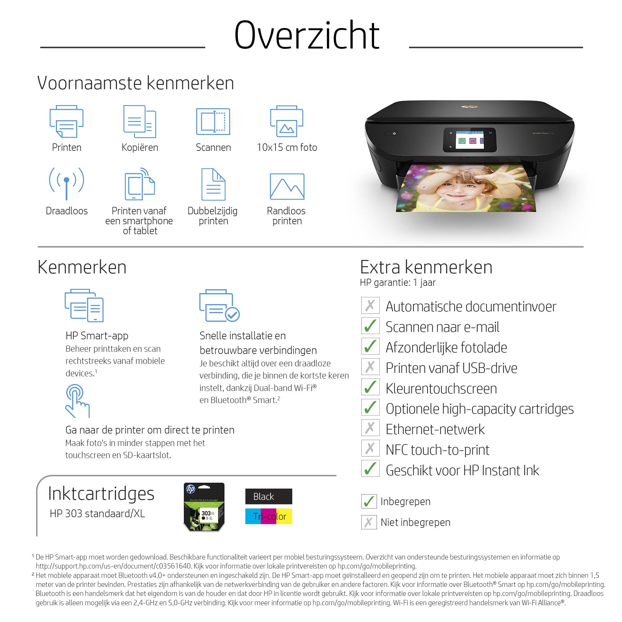 Vervangende cartridges | T6N02AE HP 303 zwarte inktcartridge (ca. 200 pagina's); T6N01AE HP 303 drie-kleuren inktcartridge (ca. 165 pagina's); T6N04AE HP 303XL zwarte inktcartridge (ca. 600 pagina's); T6N03AE HP 303XL drie-kleuren inktcartridge (ca. 415 pagina's) |