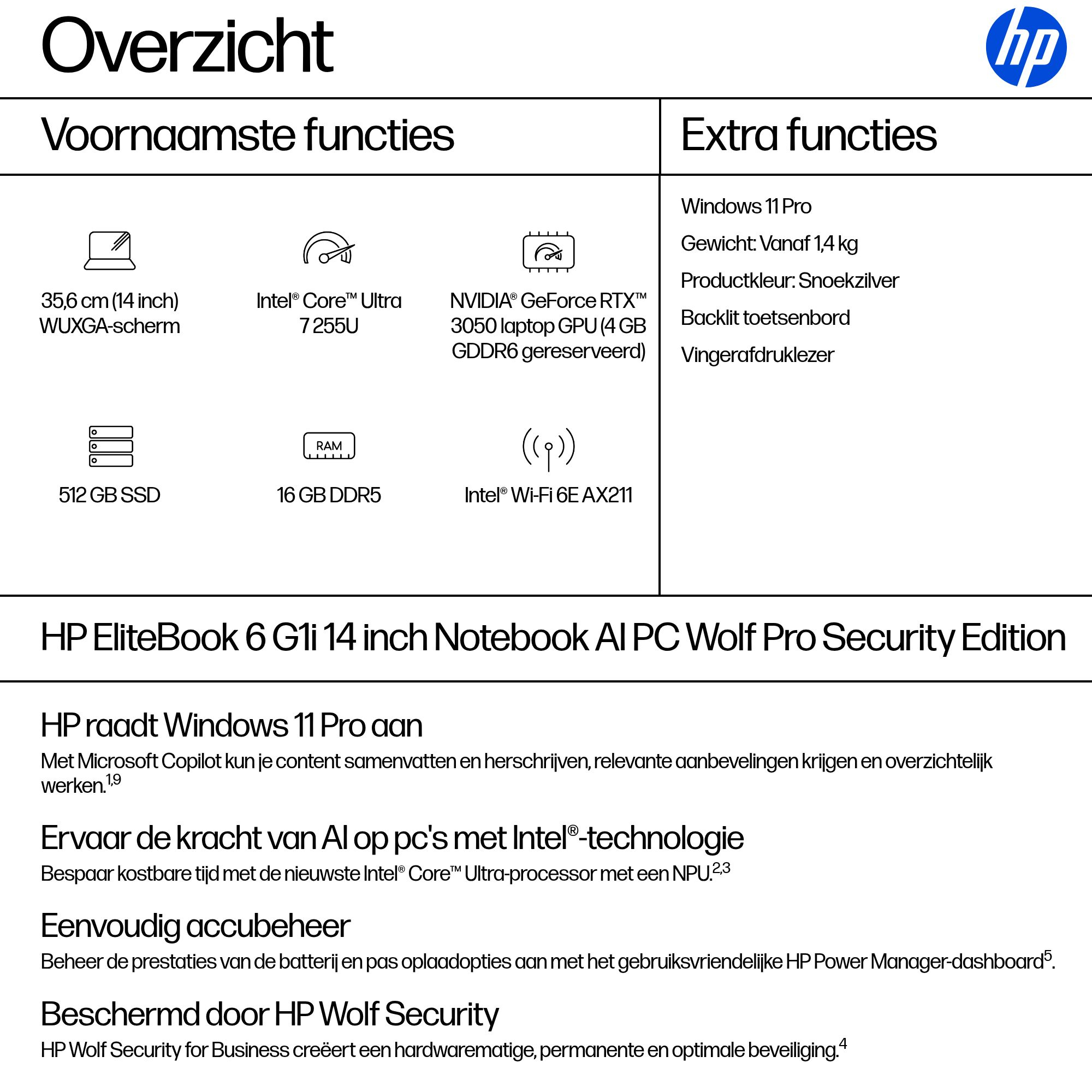 | Meegeleverde software | HP Wolf Pro Security-editie (1 jaar) |