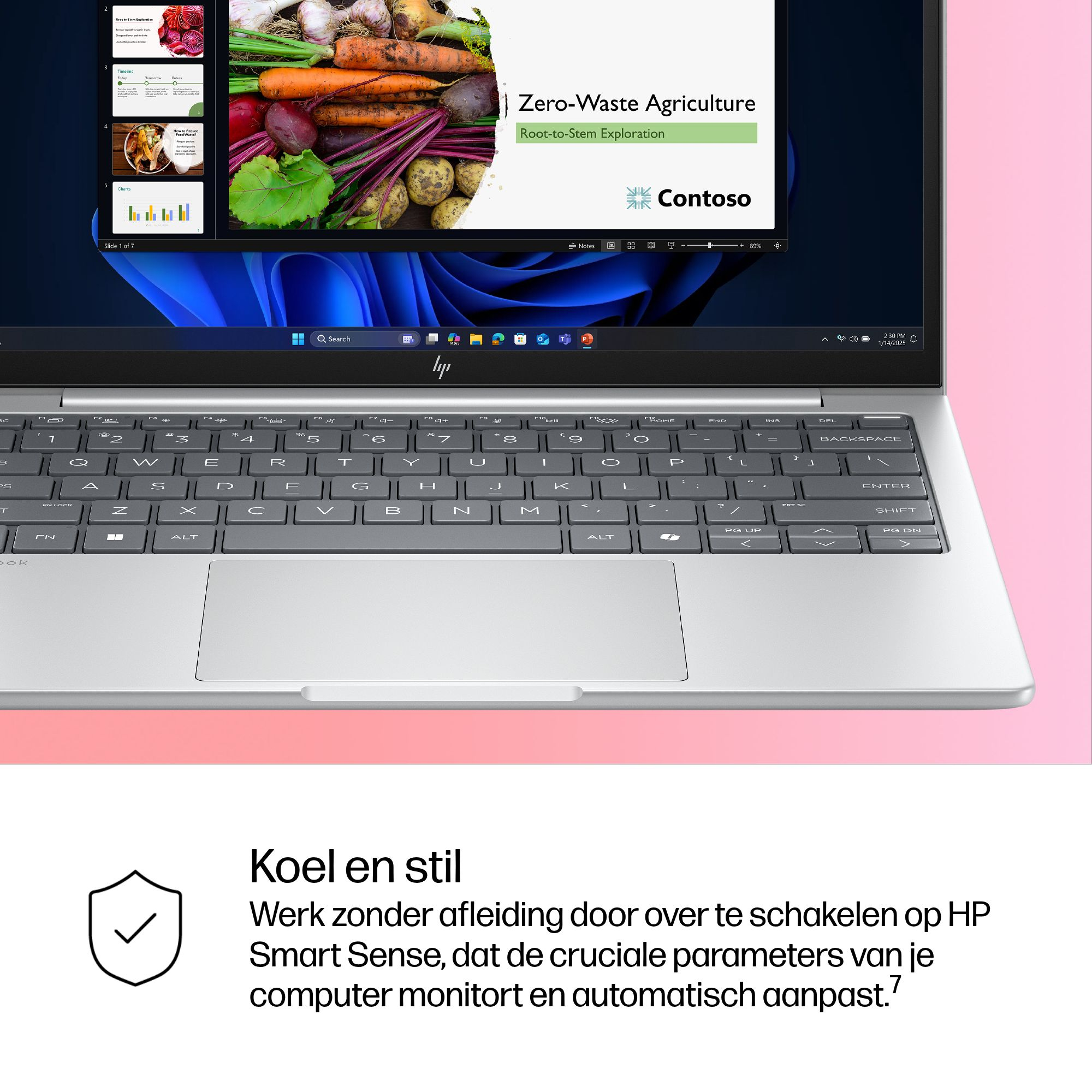 Werk overal zonder in te leveren op prestaties met Windows 11 en HP samenwerkings- en connectiviteitstechnologie. Microsoft Copilot helpt je bij het samenvatten en herschrijven van teksten, biedt slimme tips en laat je overzichtelijk werken.[5]