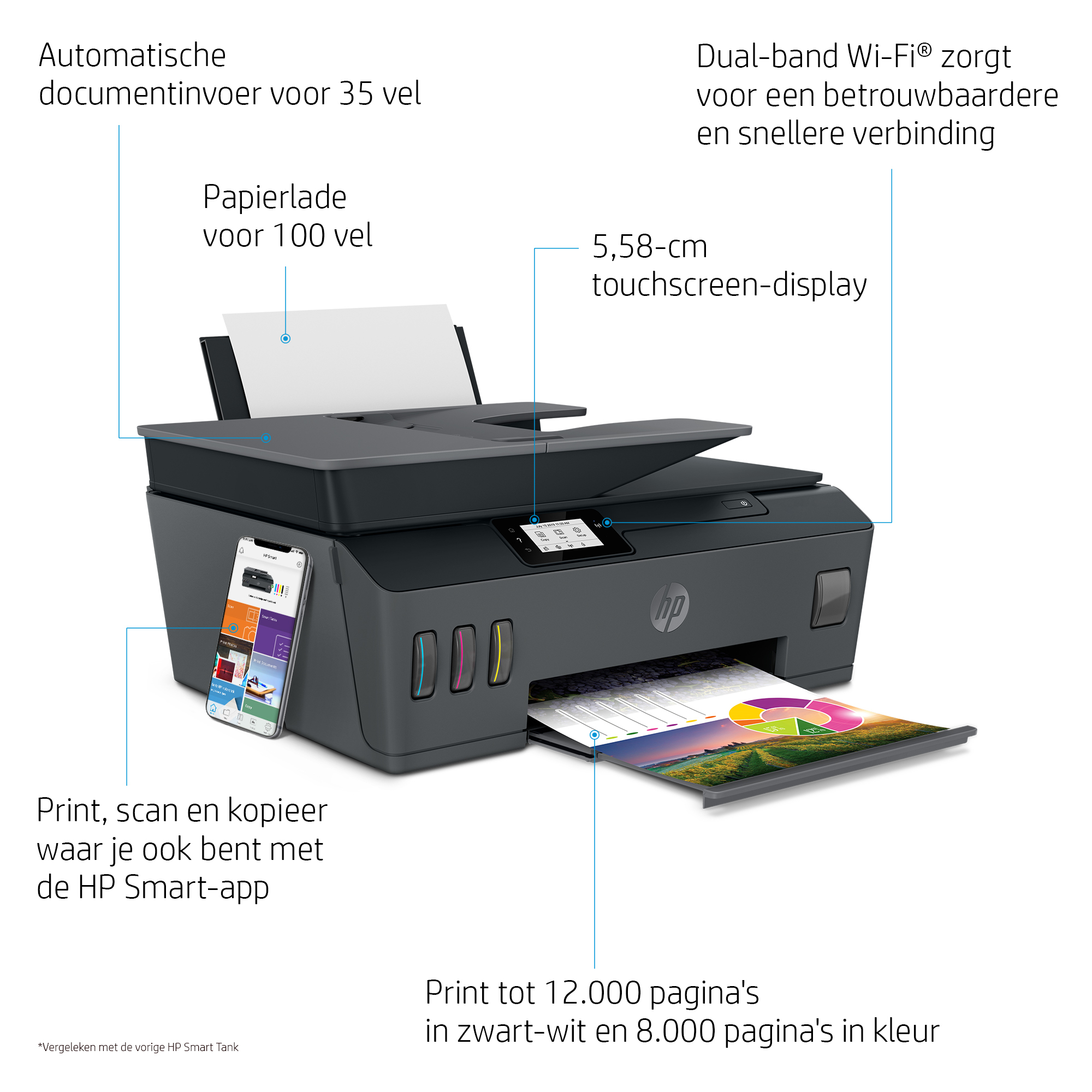 Print snel documenten, tot 38% hogere snelheden vergeleken met de vorige HP Smart Tank.[6] Werk snel met de automatische invoer voor 35 pagina's.