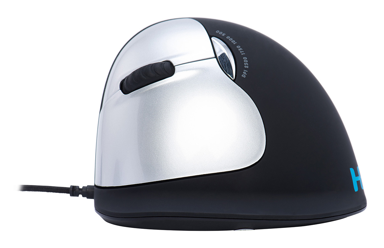 De R-Go HE Break Muis is een ergonomische verticale muis met geïntegreerde pauzesoftware. Deze slimme muis helpt je herinneren wanneer het tijd is voor een pauze. De ergonomische R-Go HE Break muis heeft een verticale stand, waardoor je de muis automatisch met je onderarm zult bewegen in plaats van alleen je hand. Hiermee voorkom je overbelastingsklachten, zoals RSI- klachten. De HE Break muis heeft een ronde vorm, zodat je hand en pols in een natuurlijke, ontspannen stand staan. De muis ligt prettig in de hand en ondersteunt alle vingers. Ben je links- of rechtshandig? We hebben verschillende versies en maten beschikbaar, zodat de muis in elke hand past. De LED- kleursignalen in de muis geven aan hoe gezond je werkt en wanneer het tijd is voor een pauze. De muis stimuleert je om op frequente basis pauzes te nemen. Deze vitale onderbrekingen helpen om overbelasting te voorkomen, stimuleren de doorbloeding van het lichaam en houden je fit tijdens je werkdag. Tijdens het muisgebuik verandert het lampje van kleur, zoals bij een stoplicht. Groen betekent ‘goed bezig’, oranje dat het tijd is voor een pauze, rood dat je te lang hebt doorgewerkt. Door gebruik te maken van deze subtiele kleursignalen ontvang je op een eenvoudige en positieve wijze feedback over gezond (pauze)gedrag. Dit product werkt samen met de R-Go Break Software dat de Benelux Office Products Award 2021 heeft gewonnen.