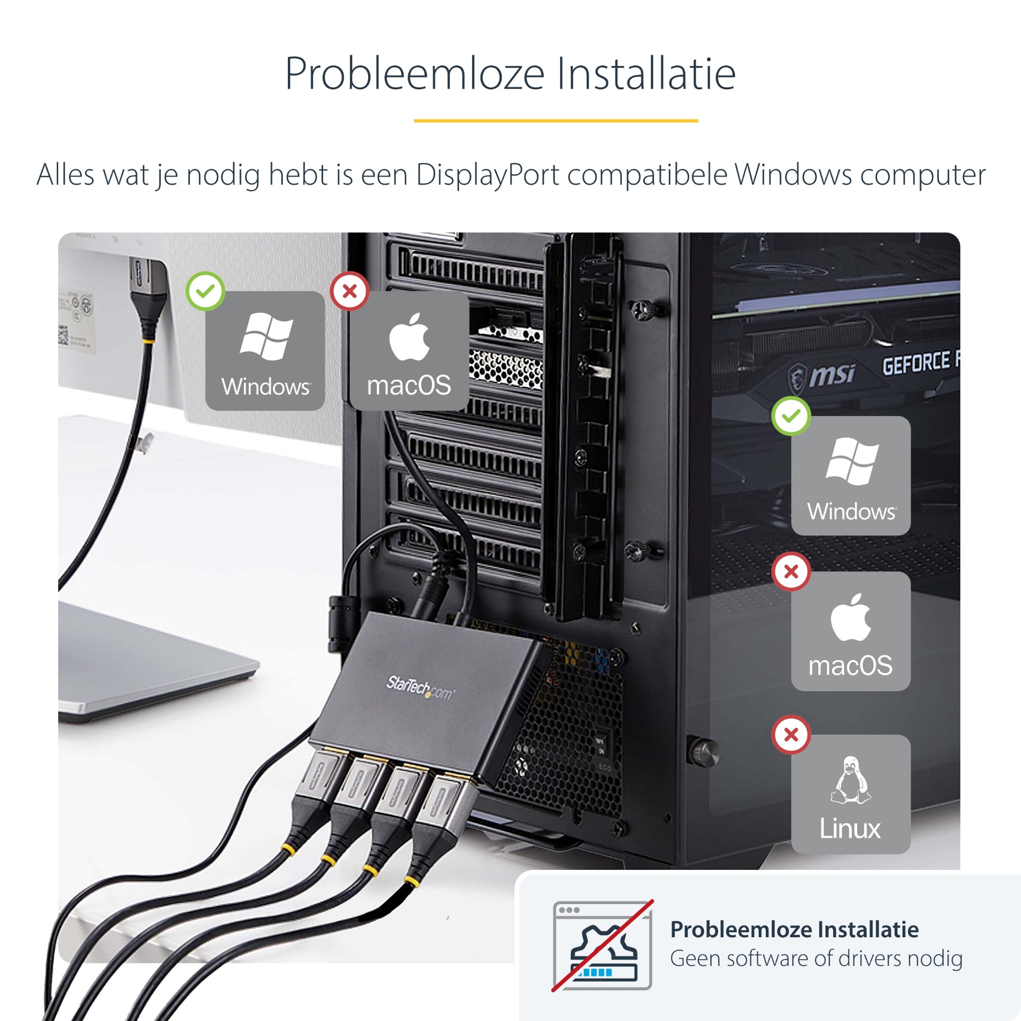 StarTech.com 4-Port DisplayPort 1.2 Splitter, DisplayPort naar 4x DP Multi-Monitor Adapter, Quad 1080p 60Hz Computer MST Hub - Enkel Windows, Geen Drivers